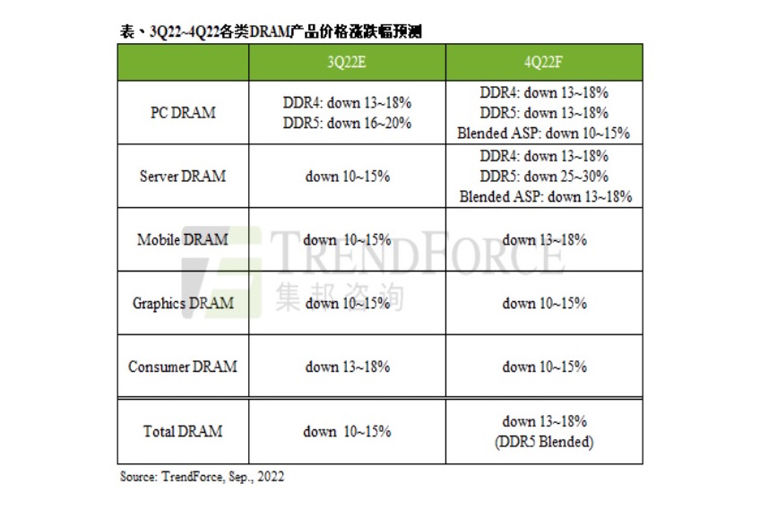 或「先谈量再议价」的情形,将导致第四季度 DRAM 价格跌幅将扩大至 13~18%。