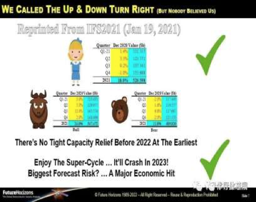 半导体分析师 Malcolm Penn 表示,在 2021 年,他们预测 2022 年将出现两位数的“超级周期”,随后 2023 年