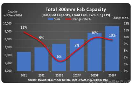 美国加州时间 2023 年 3 月 27 日,SEMI 在《300mm 晶圆厂展望报告-至 2026 年》(300mm Fab Outlook